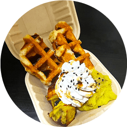 フードロスをおいしく解決!形やサイズが理由でお店に並べなかったさつまいもを、大学芋やペーストにアレンジ。贅沢に詰め込んだ特製さつまいもワッフル!